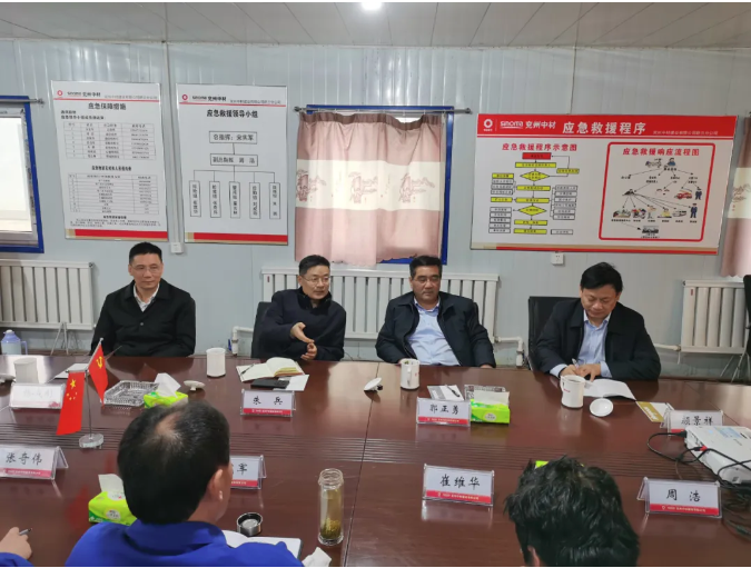 朱兵一行參觀了礦山施工現(xiàn)場,并與業(yè)主單位吉林天池鉬業(yè)領(lǐng)導(dǎo)親切交流。業(yè)主方對舒蘭分公司施工組織、裝備配置、人力配備表示高度認可。